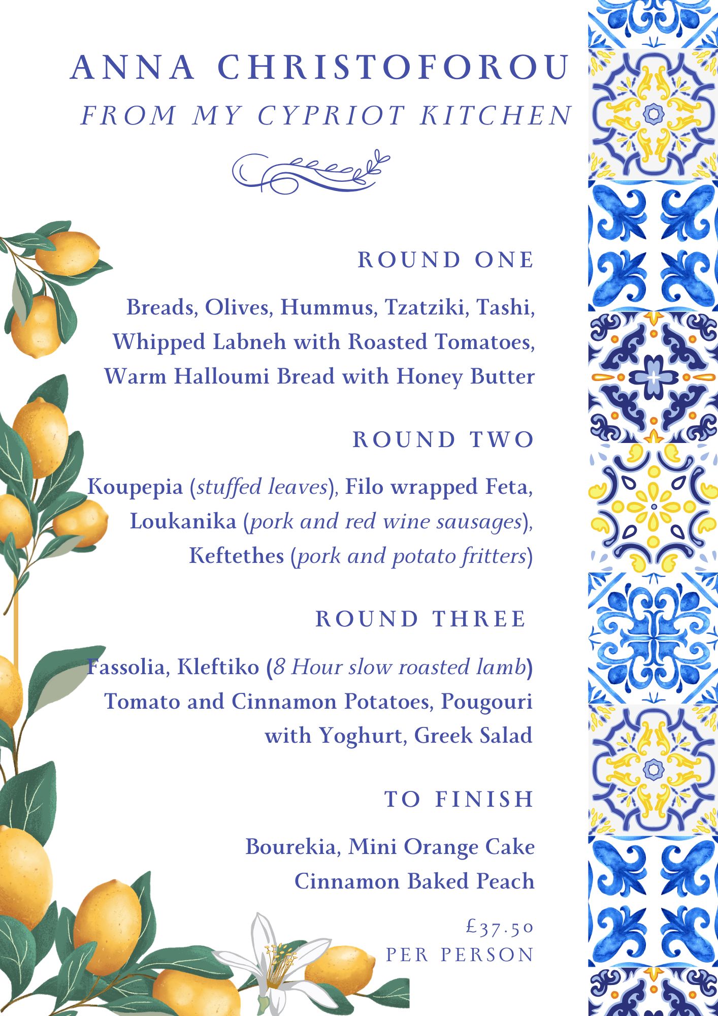 Chef, Food writer, Menu Developer, Teacher and a champion of the Greek Cypriot cooking from her childhood, Anna will be celebrating all things Eastern Mediterranean