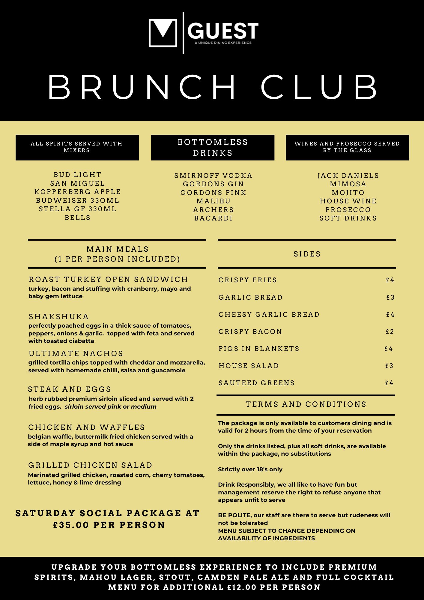 Rebranded as a Saturday Social for the Holiday Season join us for any item off our delicious menu and enjoy 2 hours of unlimited drinks and let the festivities begin
